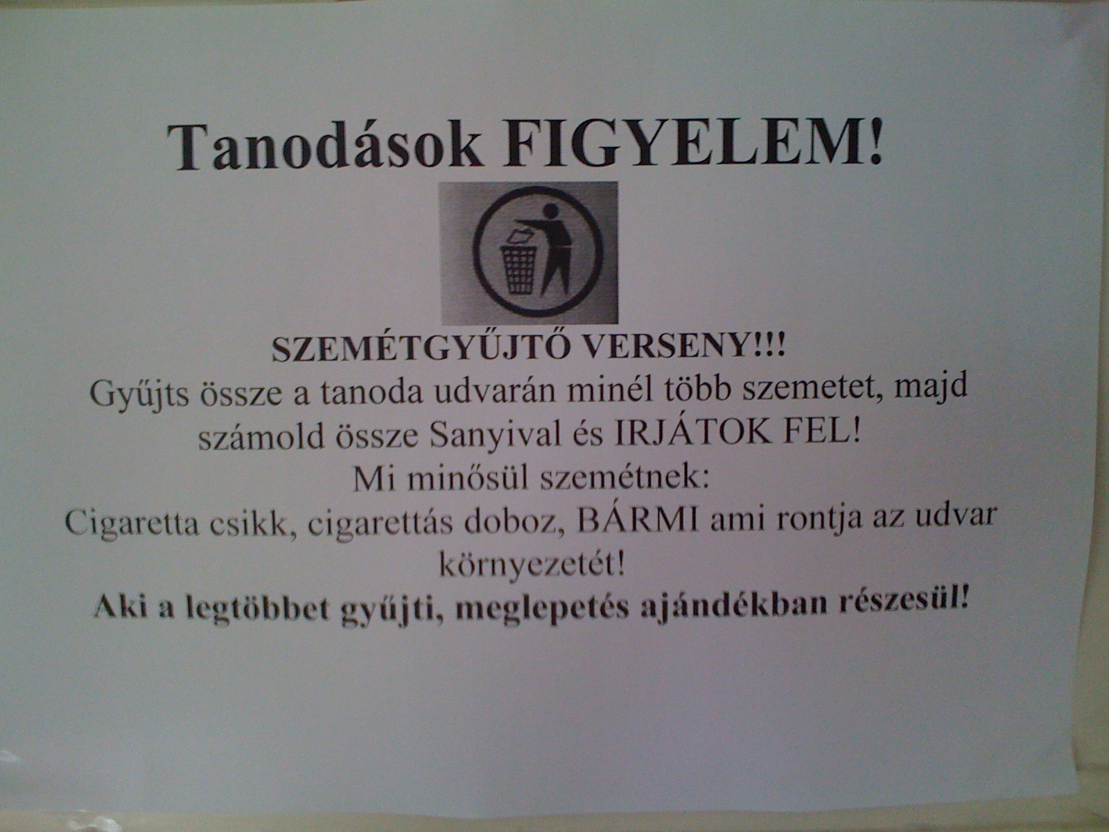Tanoda - 2010 március - Szemétgyűjtő verseny